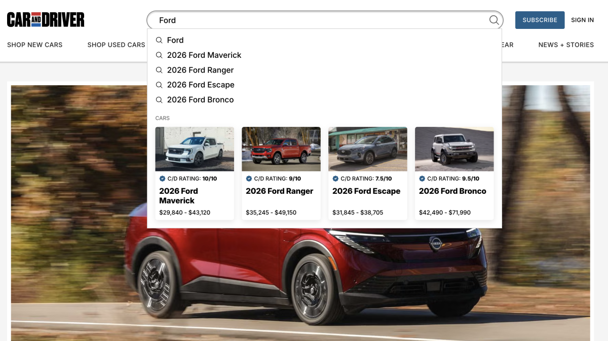 While the visuals were important on this page, this is where the rubber really met the road in terms of search relevancy. When determining what made sense to show as a result (and considering something as general as a make and model search), the team settled on a mix of three things: Relevance to search string (how close does it match what the user searched for?), recency (Sure it’s an F-150 like they asked, but let’s not pull a 2016 F-150 review above a 2026 model year) and popularity (we have MANY articles on the F-150…maybe we don’t let an article that has a few thousand views leapfrog an article that has millions of views). After dialing it in, we had our visuals ready to test.
